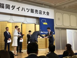 この大会には、福岡県内のダイハツ販売店 約480社が集まり、1年間の実績を振り返り、優れた成果を上げた店舗の表彰が行われました。